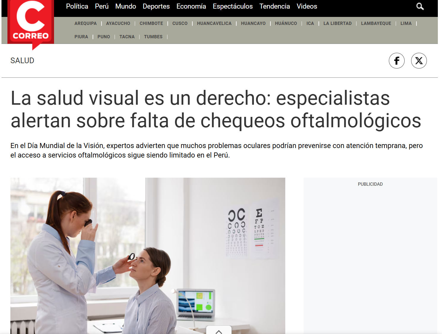 En el Día Mundial de la Visión, expertos advierten que muchos problemas oculares podrían prevenirse con atención temprana, pero el acceso a servicios oftalmológicos sigue siendo limitado en el Perú.