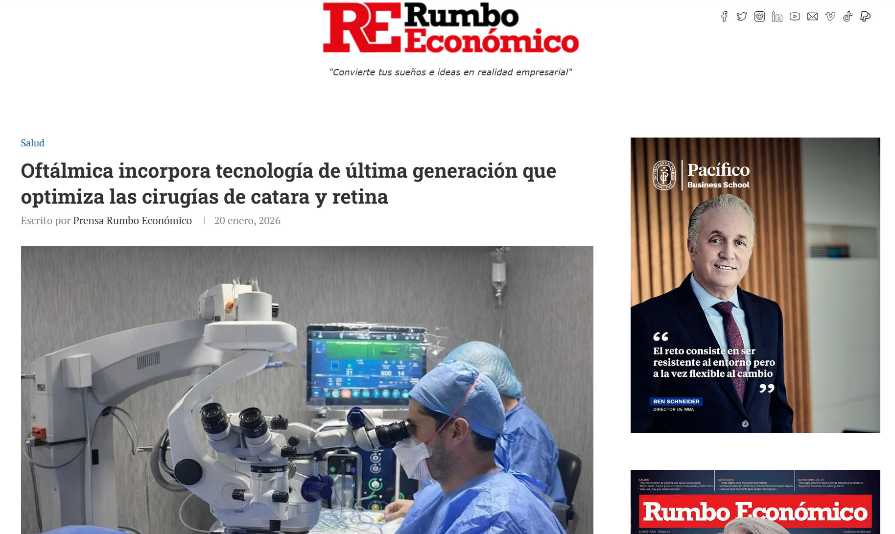 Con esta plataforma, Oftálmica Clínica de la Visión reafirma su liderazgo en el país y potencia su capacidad para desarrollar cirugías de catarata y retina con resultados superiores, procedimientos menos invasivos y una recuperación más favorable para cada paciente.