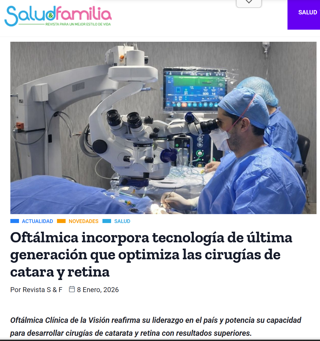 Con esta plataforma, Oftálmica Clínica de la Visión reafirma su liderazgo en el país y potencia su capacidad para desarrollar cirugías de catarata y retina con resultados superiores, procedimientos menos invasivos y una recuperación más favorable para cada paciente.