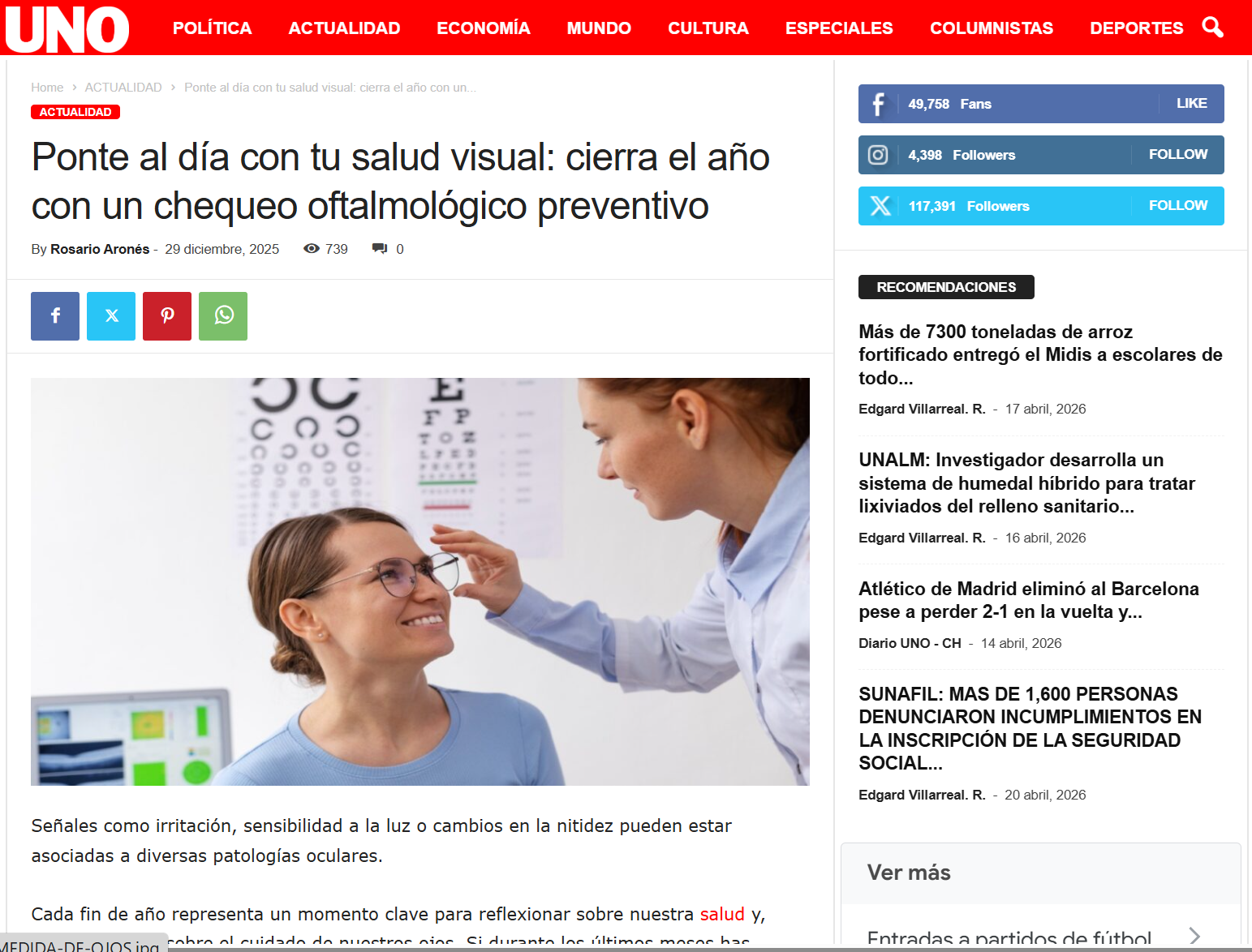 Cada fin de año representa un momento clave para reflexionar sobre nuestra salud y, especialmente, sobre el cuidado de nuestros ojos. Si durante los últimos meses has presentado molestias como visión borrosa, resequedad ocular, ardor, dolor de cabeza o dificultad para enfocar, es fundamental considerar un control oftalmológico antes de que el año concluya, a fin de iniciar el próximo con una visión saludable.
