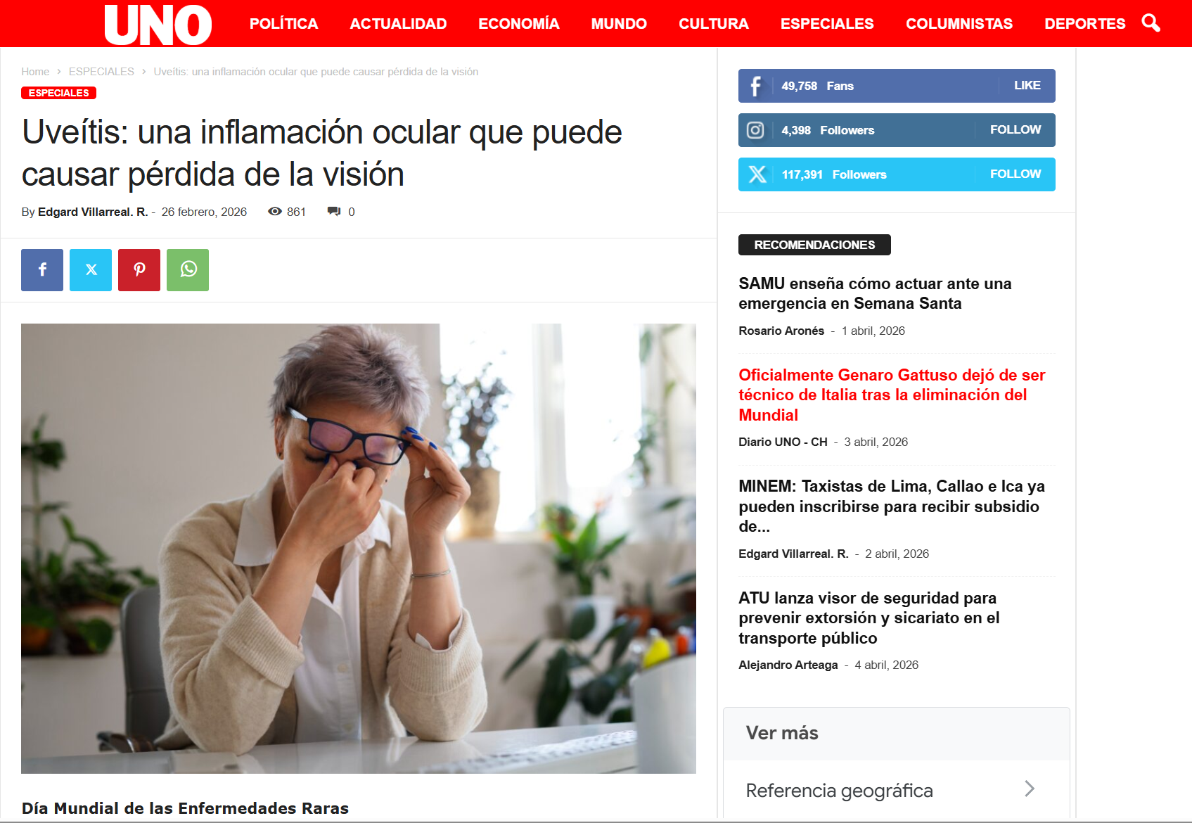 “No todas las uveítis son iguales. Algunas son agudas y reaparecen por episodios; otras pueden volverse crónicas y requerir tratamiento durante meses o incluso años. Por eso es clave identificarla”, explica el especialista.